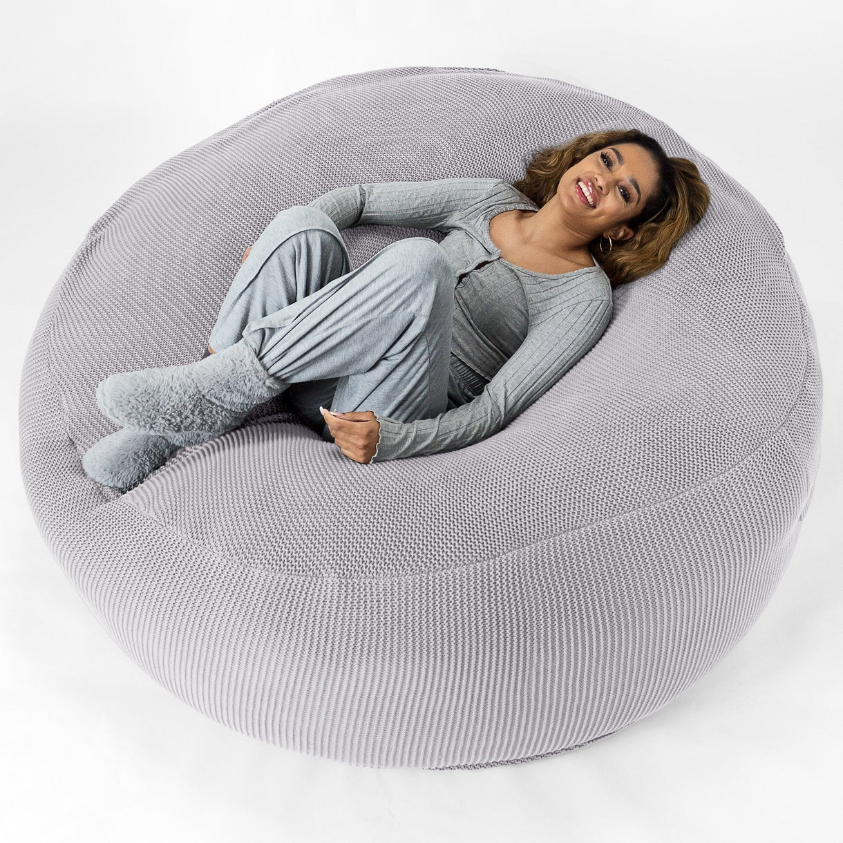 Lounge Pug - Mega-Mammoth Sofa Sitzsack XXL - Schlafsofa - Ellos Gestrickter Hellgrau– Big Bertha Original Switzerland