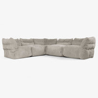Dieses fünfteilige modulare Sofa gibt Ihnen vollständige Freiheit, die Sitzanordnung an Ihr Zuhause und Ihren Lebensstil anzupassen. Stellen Sie es als klassisches L-Sofa für eine gemütliche Familiensitzecke auf – ideal zum Entspannen, Lesen oder Filmabende. Oder trennen Sie die Module zu einzelnen Sitzplätzen, um beim Empfang von Gästen zusätzliche Sitzplätze zu bieten. Jedes Segment lässt sich leicht bewegen, bietet weiche, unterstützende Sitzflächen mit dem entspannten Gefühl eines Sitzsacks und eine Struktur, die für das tägliche Familienleben geeignet ist.