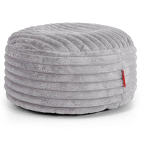 Lounge Pug Kleiner runder Fußhocker Ultra Plüsch Cord Grau– Big Bertha Original Switzerland